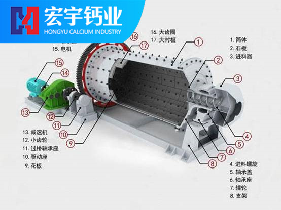 本球磨機(jī)為臥式筒形旋轉(zhuǎn)裝置,外沿齒輪傳動(dòng),兩倉(cāng),格子型球磨機(jī)。物料由進(jìn)料裝置經(jīng)入料中空軸螺旋均勻地進(jìn)入磨機(jī)一倉(cāng),該倉(cāng)內(nèi)有階梯襯板或波紋襯板,內(nèi)裝不同規(guī)格鋼球,筒體轉(zhuǎn)動(dòng)產(chǎn)生離心力將鋼球帶到一定高度后落下,對(duì)物料產(chǎn)生重?fù)艉脱心プ饔谩N锪显谝粋}(cāng)達(dá)到粗磨后,經(jīng)單層隔倉(cāng)板進(jìn)入二倉(cāng),該倉(cāng)內(nèi)鑲有平襯板,內(nèi)有鋼球,將物料進(jìn)一步研磨。粉狀物通過卸料箅板排出,完成粉磨作業(yè)。